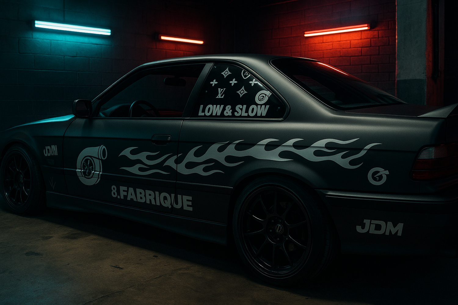 Dai un tocco unico a vetri, carrozzeria e interni con design ispirati al mondo JDM, luxury e streetwear.